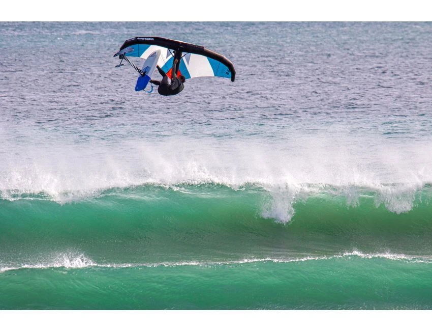 L’aile A Wing est puissante et permet de prendre une demi taille en dessous de ce que l’on a l’habitude de prendre. Ceci permet donc en même temps d’avoir une aile plus légère et maniable dans les mains.