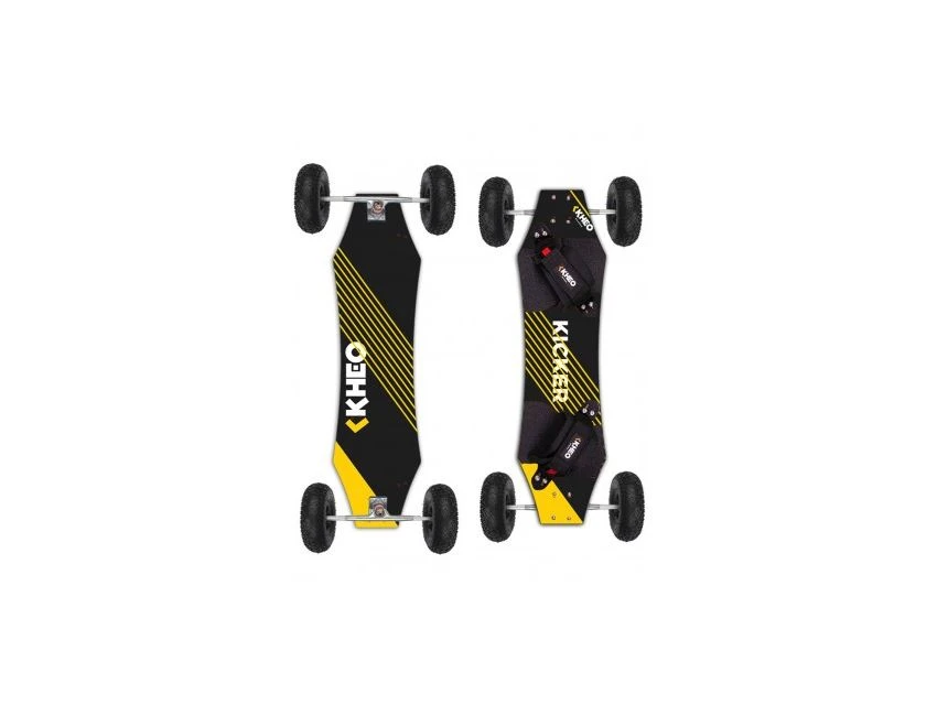 La Kheo Kicker est une mountainboard complète pour riders débutants à intérmédiaires au gabarit moyen (max 85 kg).